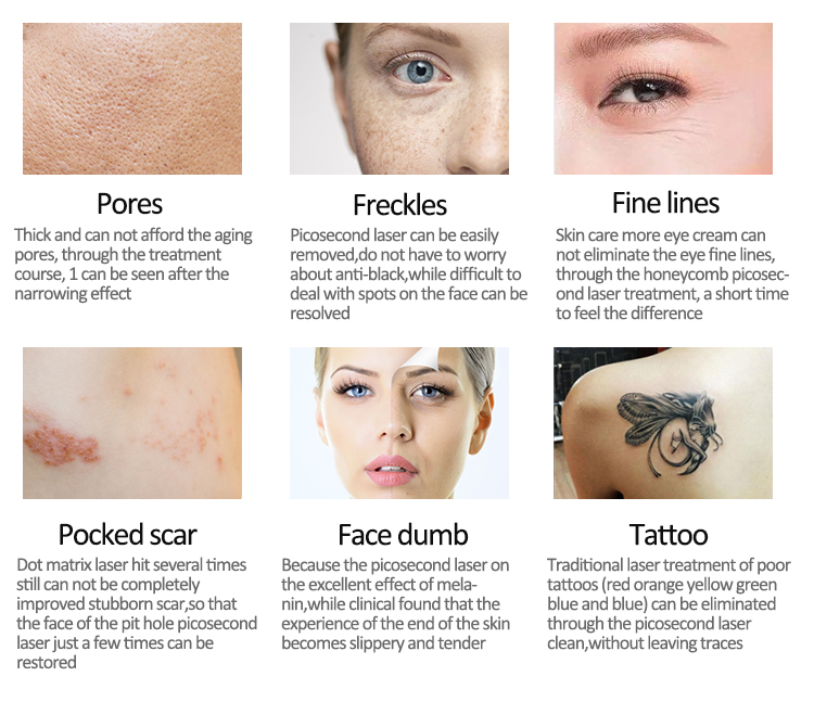 Stubborn green and blue tattoos can also be effectively removed. Treated but incomplete tattoo removal, picosecond laser can also treat.In the mechanism of pigment particle destruction, there are mainly photothermal and photomechanical effects. The shorter the pulse width, the weaker the effect of converting light into heat. Instead, the photomechanical effect is used, so picoseconds can effectively crush the pigment particles, Resulting in better pigment removal.