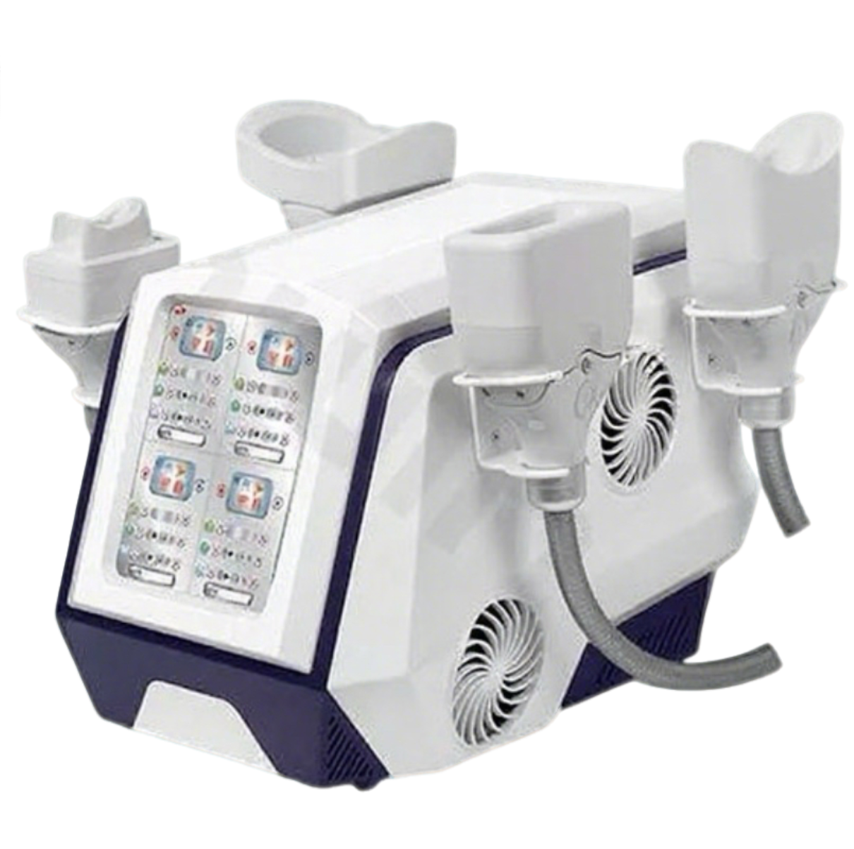 treatment heads of different shapes and sizes are flexible and ergonomic, so as to adapt to the body contour treatment and are designed to treat double chin, arms, abdomen, side waist, buttocks (under hips). Banana), fat accumulation in thighs and other parts. The instrument is equipped with four handles to work independently or synchronously. When the probe is placed on the skin surface of a selected area on the human body, the probe’s built-in vacuum negative pressure technology will capture the subcutaneous tissue of the selected area. Before cooling,and the precisely controlled freezing energy is delivered to the designated part. After the fat cells are cooled to a specific low temperature, the triglycerides are converted from liquid to solid, and the aging fat is crystallized. The cells will undergo apoptosis in 2-6 weeks, and then be excreted through the autologous lymphatic system and liver metabolism. It can reduce the thickness of the fat layer of the treatment site by 20%-27% at one time, eliminate fat cells without damaging the surrounding tissues, and achieve localization. Body sculpting effect that dissolves fat. Cryolipolysis can fundamentally reduce the number of fat cells, almost no rebound!
