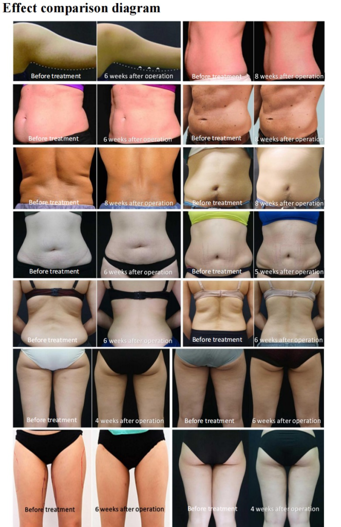 - Effective Fat Reduction: A complete treatment can reduce the thickness of the fat layer by 20% – 27%, and it can effectively eliminate fat cells while maintaining the integrity of the surrounding tissues.